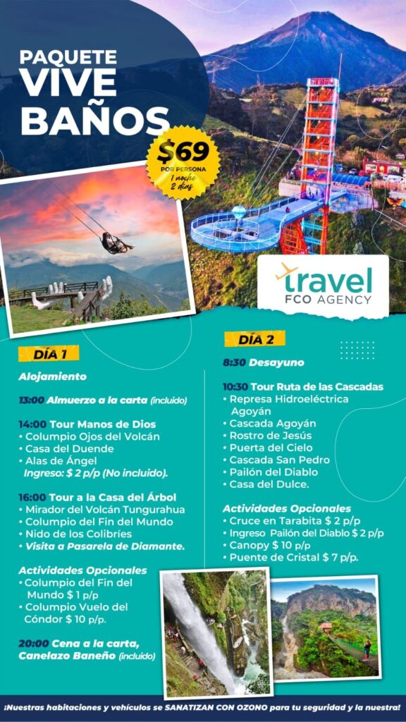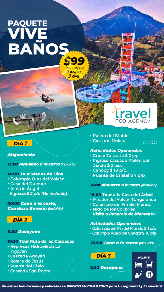 ¡Disfruta de unas vacaciones de ensueño con nuestro paquete turístico VIVE BAÑOS Nuestro paquete incluye: